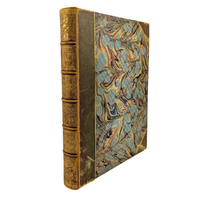 Bound in half morocco with marbled paper-covered boards. Externally, generally smart, with rubbing to joints and extremities. Fading to the spine causing a little discolouration, as is common with this colour leather. Front joint starting to the tail. Endpapers renewed, half title retained. Binders stamp for Wareing Webb, Liverpool to the front free endpaper. Internally, firmly bound. Pages are bright and generally clean, with just the odd spot. Plates remain exceptionally bright.