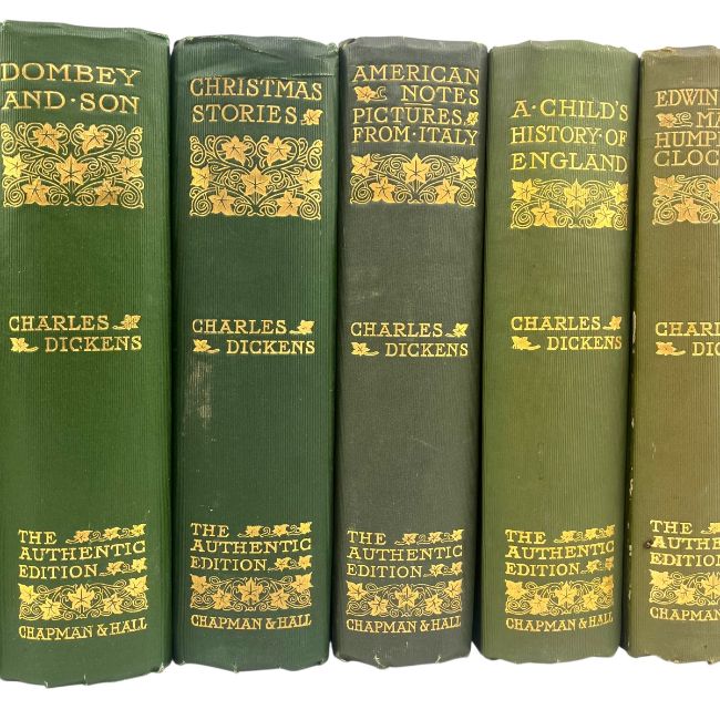 Dickens, Charles. 1901-5 The Works of Charles Dickens. London: Chapman & Hall. The Authentic Edition. Complete in twenty-one volumes. With illustrations by Phiz. Uniformly bound in the publisher's original green cloth. (21)