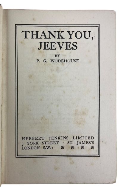Wodehouse, P. G. A collection of fifteen P. G. Wodehouse novels, comprised of three first editions and twelve early editions. Containing: The Heart of a Goof, Thank You Jeeves, The Girl on the Boat, The Clicking of Cuthbert, The Small Bachelor, Sam the Sudden, Quick Service, Uneasy Money, Love Among the Chickens, If I Were You, Money for Nothing, Jill the Reckless, Spring Fever, A Gentleman of Leisure and Mr. Mulliner Speaking. First editions are Thank You Jeeves, Spring Fever and Mr. Mulliner Speaking. (15)