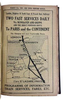 A collection of books of railway interest, including The Railway Magazine 1897, a timetable of services via Southampton from 1922-4, a timetable of services outlining the resumption of Dieppe services after the European War, 1919-22, A History of the Southern Railway (1936) and Warne's Story Book on Railways. With the original advertisements to the timetables. Illustrated with folding maps to Southampton volume. (5)