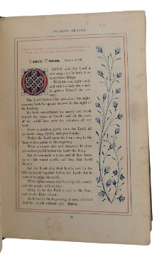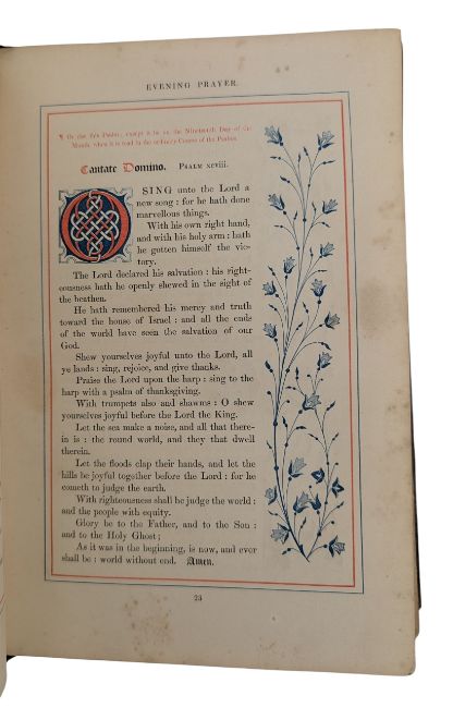 1845, The Book of Common Prayer, and Administration of The Sacrements, And other Rites and Ceremonies of The Church, According to the Use of the United Church of England and Ireland. With Notes. Illuminated: And Illustrated with Engravings from the Works of the Great Painters. London: John Murray. A wonderfully illustrated copy of The Book of Common Prayer, in an intricate and unique papier-mache binding. Illustrated throughout with detailed vignettes, colour adornments and illuminated letters, with seven striking chromolithograph plates. Lacking one plate to page 32. This copy was previously held in Brecon Cathedral Library, with their bookplate to the front paste down and an ink inscription gifting the book to the cathedral to the front blank. (1)