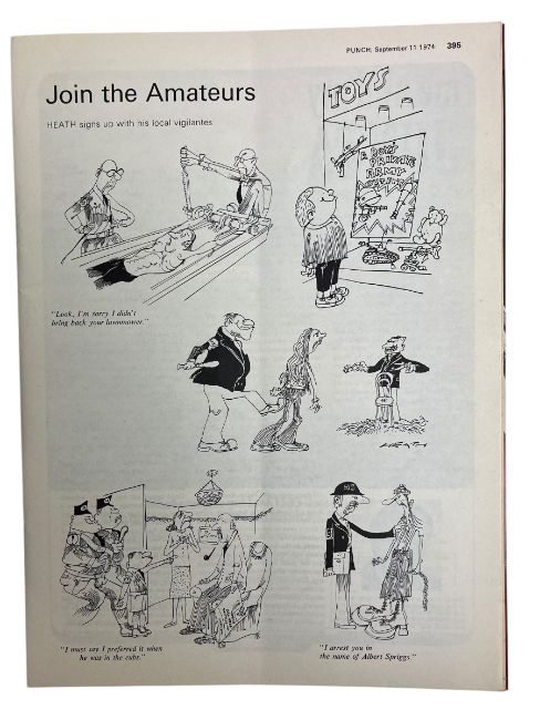 A large collection of Punch magazines, with issues dating from 1916 up to the 1990s. Seven boxes of Punch magazines, illustrated throughout and bound in the publisher's original bright wraps. Covering topical events of the time, including issues published during the First and Second World War. An impressive collection of this satirical magazine. (7 boxes)