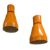 A matching set of three large industrial orange pendant ceiling lights. Each having black cord wire, hanging hooks over a conical shade finished in orange enamel.