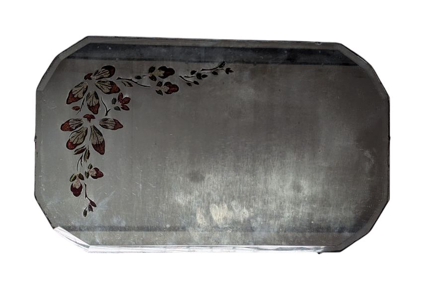 Two early 20th century Art Deco frameless hanging mirrors. Each of octagonal from with one having coloured floral decoration and the other with etched detailing.