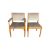 A retro mid 20th century British Modern Design teak and beech wood dining table and matching six chairs. The extending table of rectangular form raised on tapering beech legs. The set of six chairs having cream upholstered seats and backrests with teak frame.
