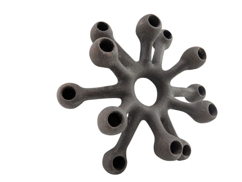 Jens Quistgaard for Dansk Designs - a retro mid-20th-century circa 1960s cast iron Spider Tiny Taper Holder candelabra candlestick. The candle holder having twelve atomically shaped candle holders. In original box.