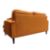 A modern designer two-seater sofa settee. The sofa of deep-set form having a vibrant orange velvet upholstery to the frame and cushions. All raised on turned supports upon brass castors.