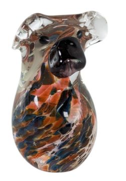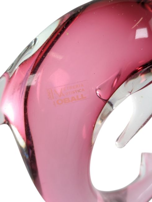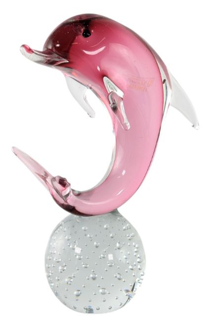 A collection of vintage 20th-century Venetian Murano studio art glass animal figures, together with further assorted ones. The lot to include a yellow, orange and clear glass pair of swallow birds perched on base, a pink, blue & clear glass pair of flying doves on base, a large Oball Vetrerie pink glass dolphin on bubble control spherical base, a pair of green and blue seated doves, a pink dove, and a swirl glass posy vase/holder. Together with an Eamonn Vereker Glass, Australia mottled glass koala, a clear & gilt painted glass koala & crocodile, a glass Welsh dragon, together with a Phoenician Glass duck.