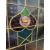 An early 20th century oak and glass hanging display cabinet / cupboard. The cabinet having two leadlined doors, each with coloured Art Nouveau floral panels. The doors open to a shelved interior.