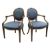 Smith & Watson, New York, Cabinet Makers & Chair Makers since 1907 - a pair of French Louis XVI style gilt wood framed & upholstered lounge armchairs. Each having an oval padded backrest with series of floral embellishments to frame. Scrolled elbow rests over an overstuffed upholstered seat. All raised on squared tapering supports. Label to underside.