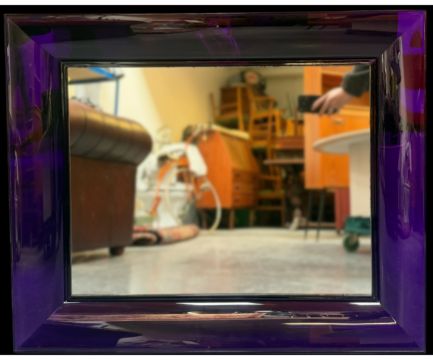 Philippe Starck (French, b 1949) for Kartell - Francois Ghost Mirror - and an early 2000s designer hanging mirror. The mirror having a purple acrylic frame and a central mirror plate. Makers' marks to the verso.