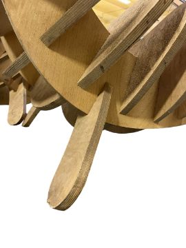 A pair of vintage Bespoke made 'Fish Bone' low lounge chairs / easy lounge chairs. Each of plywood constructions with a sweeping seat and backrests. All raised on splayed plywood supports.