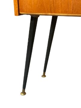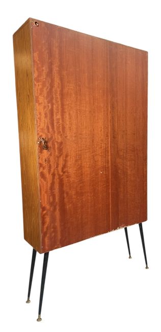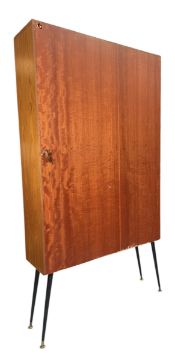 Victor. B. Wilkins for G Plan - Fresco Range - a retro mid 20th century circa 1960s teak bookcase / cocktail cabinet on legs. The cabinet having a single shelf over a drop-down cocktail cupboard. All raised on ebonised tapering splayed supports.