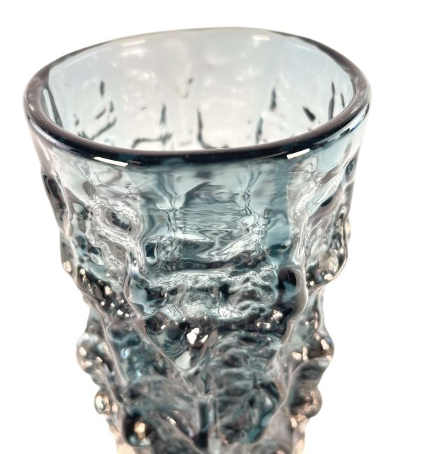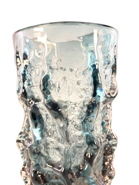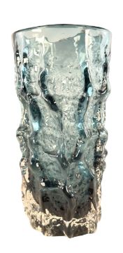 Geoffrey Baxter for Whitefriars - Pattern No. 9689 - a retro 20th century textured 'Bark' effect cylindrical vase in the Indigo colourway. Smooth pontil mark to base.