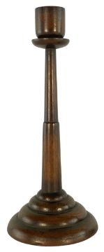 A pair of 1930s Art Deco solid oak turned candlesticks. Terraced bases with tapering columns having single sconces to each atop.