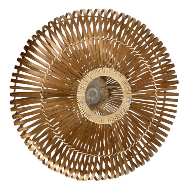 A Post Modern bamboo rattan ceiling/lamp shade. The shade of circular woven with white string.