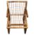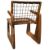 A Contemporary High End Design walnut and woven leather strips lounge / dining chair. The armchair having an open back rest and seat with woven leather grip. Floating elbow rests, all raised on shaped pedestal side supports.