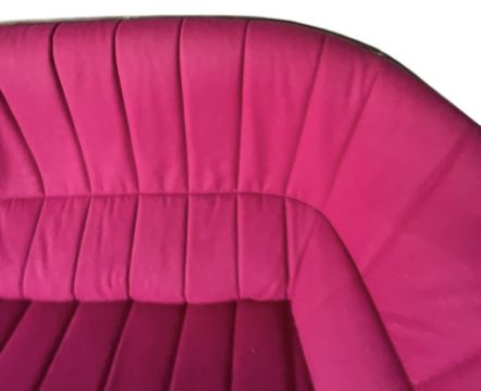 Inga Sempe for Ligne Roset - Moel Model - an early 21st century French high-end designer two-seater sofa settee. The sofa having grey leather exterior with pink velvet upholstery to the cushioned seat and backrest.