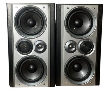 Aiwa / Parker Knoll- a modern Hi-Fi stacking system comprising a Stereo Equaliser (GE-NH1100), Receiver (MX-NH1100), CD player (DX-NH1100), Cassette Deck (FX-NH1100) and the matching pair of speakers. All hosued within a teak HI-Fi cabinet with a smoked glass door can cupboard below. Label to the verso.