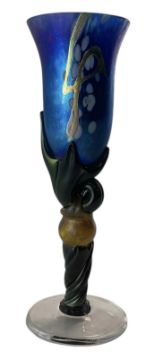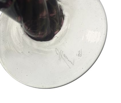 Colin Heaney - a collection of six 20th century 1980s Australian designer lustre glass goblets. Each having iridescent fluted tops raised on organic stems and circular foot. Each being signed and dated per each year of release to the bases.