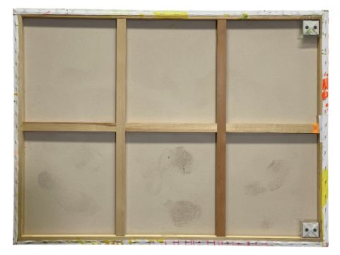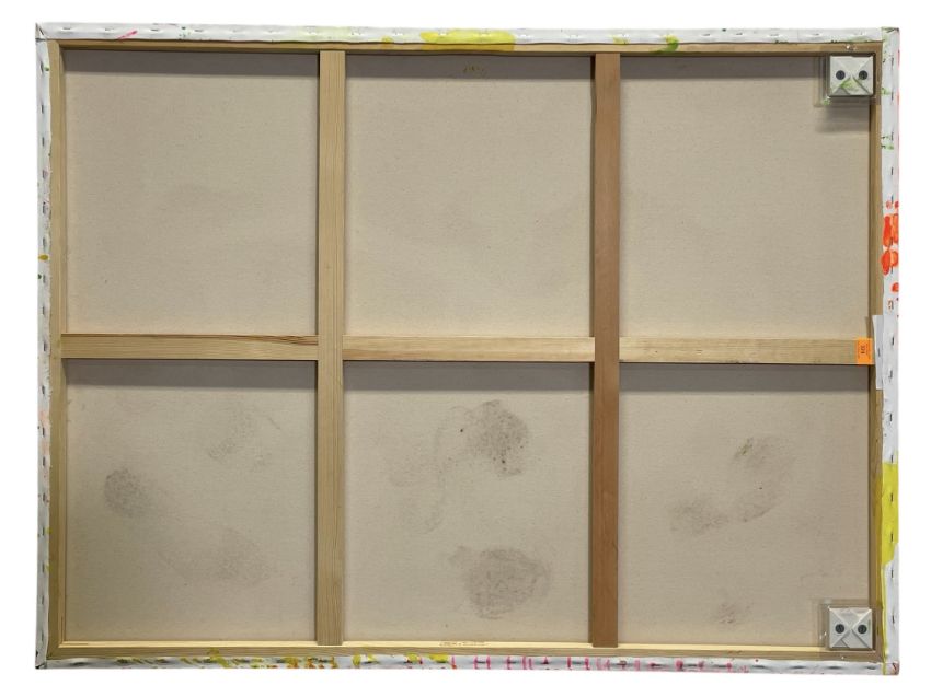 Max Gottlieb (b. 1969) - a Contemporary untitled mixed media on canvas painting with a silhouette of garden scissors to the centre. In red, orange, green and pink colourways. Unframed.