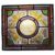 Four Victorian 19th century leaded stained glass window panels. Each having a central glass roundel with a cottage in the countryside, all flanked by floral decorated panels with green, red, yellow, and pink glass insets. Some cracks present.