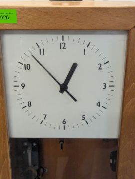 Gents of Leicester - A mid 20th beechwood Pulsynetic master clock by Gents of Leicester. The clock case being of simple beechwood design. The face having black Arabic numeral to chapter ring. Measures approx: 133x29x19cm