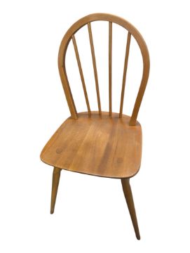 Lucian Ercolani for Ercol - A set of five of mid 20th century circa 1960s beech and elm hoop back dining chairs. Each chair having hooped top rail with spindles within over saddle seat on tapering supports united by stretchers. Measures approx: 86x40x43cm