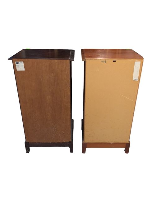 Stag Furniture - A minstrel pattern pedestal chest of drawers having bracket leg base with upright body of drawers. Flared caddy top above. Together with another similar