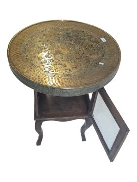 An early 20th century mahogany and glass cased bijouterie table cabinet. The cabinet set with a later brass applied table top. Measures approx: 73x61cm