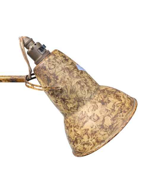 Herbert Terry - Model 1227 - a vintage 20th century Anglepoise table / desk lamp light. The lamp having a conical shade with spring loaded arms. Features a solid cast two tiered painted base in camouflage colourway. Stamped to the base of arm. Measures approx: 96cm tall fully extended