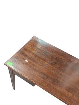 19th century mahogany writing table desk. Raised on squared legs with a single drawer to the frieze. Chamfered edge top above. Measures approx: 71x90cm
