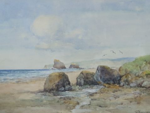 William "Willie" Rawson (1865–1949) - Two 19th century watercolour on paper paintings. Deoicint shoreline coastal scenes, frame and glazed with signature to bottom right. Measures approx: 37x47cm