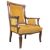 An early 20th century French fauteuil ( armchair) The chair of mahogany construction having inlaid show wood frames having turned legs and scrolled elbow rests. Upholstered seat and backrest. Measures approx: 92x62x65cm