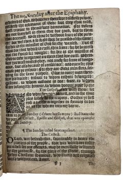 To contain: The Booke of Common Prayer (presumed), With The Psalter or Psalmes of David (1615), Imprinted at London by Robert Barker, and The Whole Book of Psalmes: Collected into English meeter by Thomas Sternhold, John Hopkins, and others (1621). Register runs [4] B-Z8, Aa-Hh7 through the first two books, these sections lacking L5-L8, T2 and T7, with two additional leaves included after D8. The Whole Book of Psalmes has its own register, running from A-K8, lacking I1-I3, I6-I8, with leaf K1 bound incorrectly. With charming contemporary ink notations to the front paste down and dotted throughout, of Robert Watts, who owned the book in the early 17th century, before passing it on to Dorothy Watts, John Lowey, John Twentyman, and others. (1)