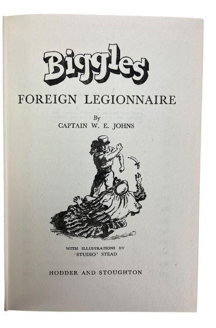 Johns, W. E. A collection of Biggles adventure books, with one other. Including seven first editions and one reprint. Comprised of Biggles in Australia (1955), Biggles Air Detective (1952), Biggles Breaks the Silence (1949), Biggles Foreign Legionnaire (1954), Another Job for Biggles (1951), with a pictorial hardback edition of Biggles Air Detective (1952), and a reprinted edition of Biggles of 266. With Wings Beyond Rio [c1941] by J. Gordon Robinson, the first edition. Six of the original dust wrappers are present. (8)