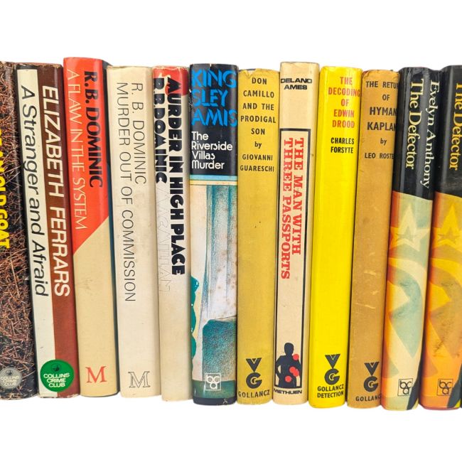 Detective fiction. A collection of modern first and early editions from many notable detective authors of the 20th century. Including works by John Braine (signed), Elizabeth Ferrars, Evelyn Anthony, D. B. Wyndham Lewis, and many others. Comprised of 11 first editions and 11 early/bookclub editions. Each in a bright example of the publisher's original dust wrapper. With the bookplate and pencil inscription of Kinn Hamilton McIntosh to the odd volume. (22)