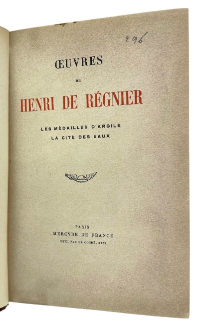 French literature. A collection of smartly bound French writings from the late 19th and early 20th century. To include Lettres de Madame de Sevigne (1876) in 6 volumes, with Oeuvres de Henry de Regnier [c1921], in five volumes. Bound in half calf with cloth boards to one set, and quarter morocco with paper-covered boards to the other. (11)