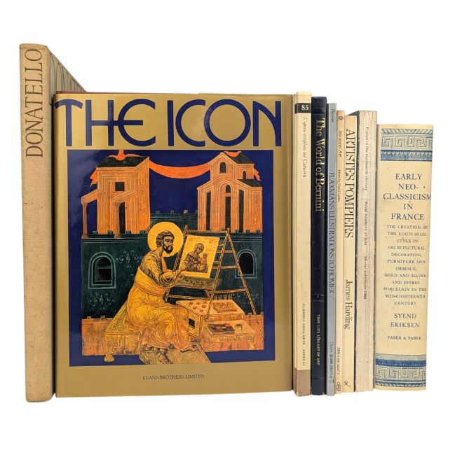 Classical art book. A collection of nine large illustrated books on the topic of classical art. To include The Icon (1982), Innocent Art, ed. David Larkin, France in the Eighteenth Century (Winter Exhibition 1968), L'Opera Completa del Canova (1976), Flaxman's Illustrations to Homer, Drawn by John Flaxman, Engraved by William Blake and others, Artistes Pompiers by James Harding, Donatello (Phaidon Edition), The World of Bernini by Robert Wallace, and Early Neo-Classicism in France, by Svend Eriksen. (9)