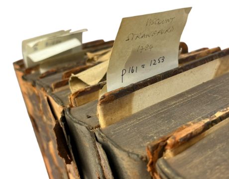 Certain cases have been bookmarked by McIntosh with handmade tabs, to be used as a reference or inspiration in her writing. These murder/crime cases include: The Massacres of Glencoe 1698, George Duke of Clarence’s treason and execution in 1478, Hubert de Burgh’s trial in 1239, the trial for the murder of Sir Edmund Berry Godfrey in 1679, and others.