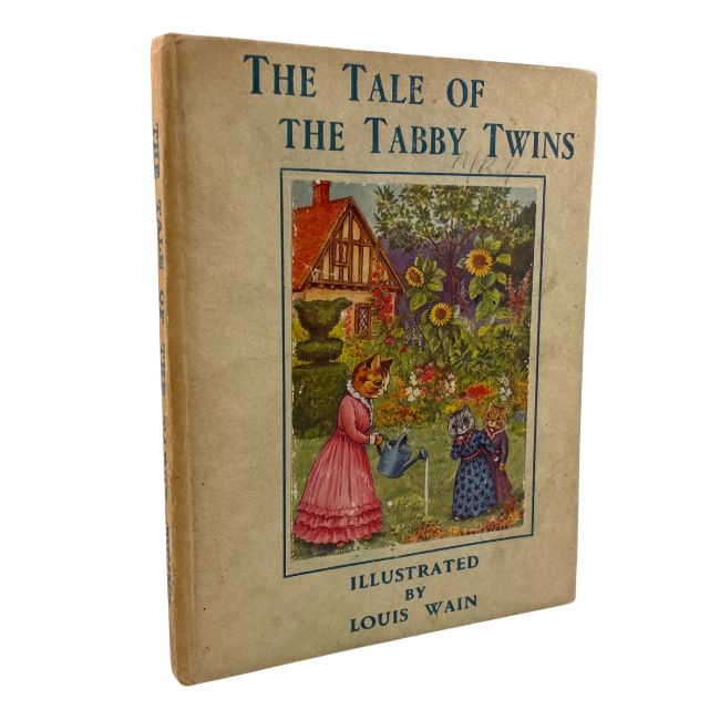 [1920] The Tale Of The Tabby Cats. Written by Cecily M. Rutley and illustrated by Louis Wain. Dundee & London: Valentine & Sons. First edition. Dated 1920 using Jisc, from a copy of the work being held at the V & A Museum Libraries. A smart copy of this charming children's tale, featuring colour illustrations from Louis Wain. Bound in the publisher's original boards with pictorial inlay. Very scarce. (1)