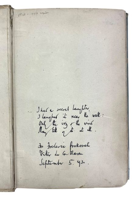 Bound in the publisher's quarter paper vellum with cloth boards. Externally, very good, with a few marks and light rubbing to the extremities. A few spots to endpapers. Internally, firmly bound. Lacking frontispiece to one volume. Pages are bright and clean. A few closed tears to signed volume, with no loss.