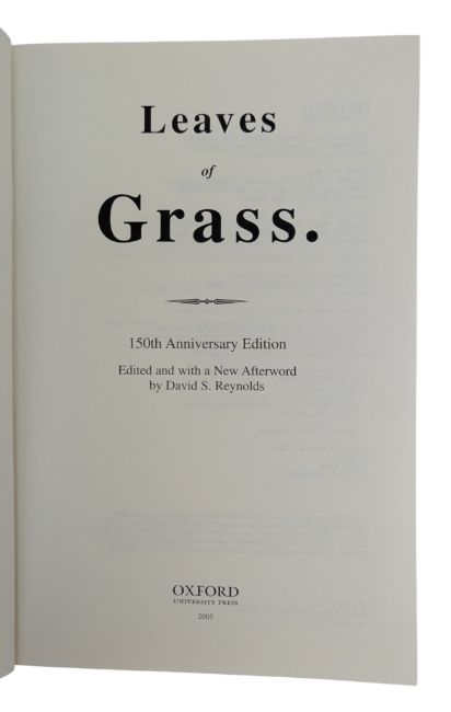 Whitman, Walt. 2005 Leaves of Grass. Oxford: University Press. Edited by David S. Reynolds. 150th Anniversary Edition of Walt Whitman's Leaves of Grass, signed to the flyleaf by Bryan Cranston. Known for its connection to the hit television series, Breaking Bad, with this edition being identical to the on-screen version which finally tipped off Hank to Walter's activities. Signed by Brian Cranston, known for his leading role of Walter White in the series. (1)
