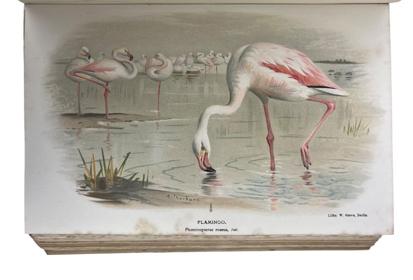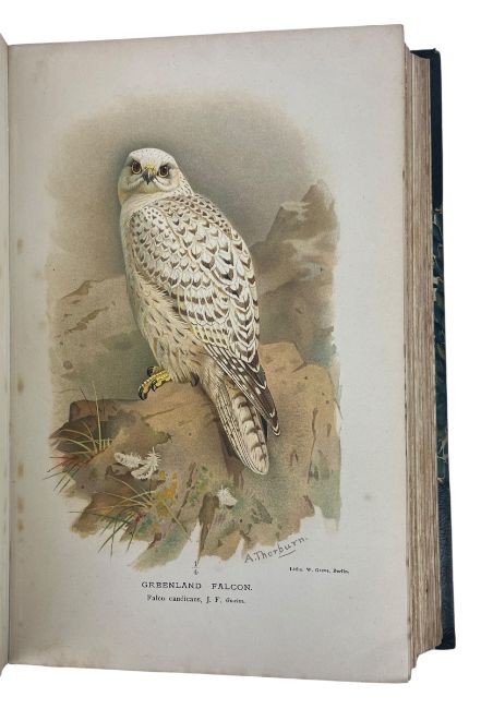 Issued by Lord Lilford, President of the British Ornithologists' Union. 1885-1897 Coloured Figures of the Birds of the British Islands. London: R. H. Porter. Smartly bound by Bickers in half crushed morocco with marbled paper-covered boards. Beautifully illustrated throughout with chromolithograph plates mostly after A. Thorburn and J. G. Keulemans. Collated, complete, with a frontispiece and 421 plates. With the bookplate of Guy Fenwick and a label from Wheldon & Wesley booksellers to the front paste down. An attractive complete set of Lilford's colourfully illustrated series on British birds. (7)