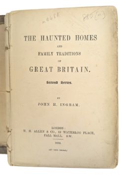 Ingram, John. 1884 The Haunted Homes and Family Traditions of Great Britain. Second series. London: W. H. Allen & Co. Bound in the publisher's pictorial cloth. The first edition of John Ingram's popular collection of supernatural tales. Together with three other 19th/early 20th century works, including The Disappearing Eye (1909 first edition) and The Chinese Jar (c1893) by Fergus Hume, and Maria Marten of the Red Barn mystery, a complete edition. Each bound in the publisher's cloth. (4)