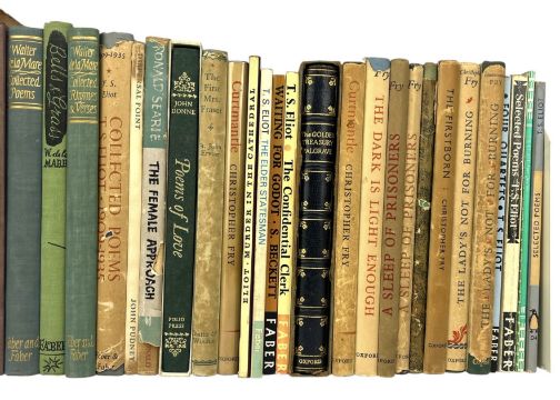 Modern poetry and plays. A collection of c.36 books of poetry and plays. Including a signed letter from Walter de la Mare loosely inserted to Peacock Pie. To include volumes from T. S. Eliot, Walter de la Mare, Ronald Searle, Alistair Cooke, Christopher Fry, Sir John Ervine, Edward Sackville-West, and others. An excellent collection owned by author Kinn Hamilton McIntosh, with her inscription and bookplate to some volumes. Mixed edition set, with some first editions, early impressions and reprints. (c.36)