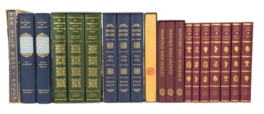 A collection of Folio Society reprints. To include Pepy's Diary (1998), Six novels from Jane Austen (1997), The Silk Road (2002), The Mediterranean and the Mediterranean World (2000) and others. London: The Folio Society. All volumes are in excellent condition, housed in the publisher's original slipcase, with the exception of the Jane Austen set, which lacks the slipcase. (20)