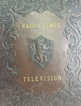 A late 20th-century decorative leather cover for Radio Times Television. Bound in full limp calf with elaborate blind-stamped decoration, gilt lettering and a moire silk lining. To include an issue of the Radio Times from December 1978.