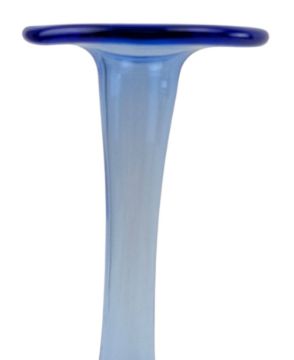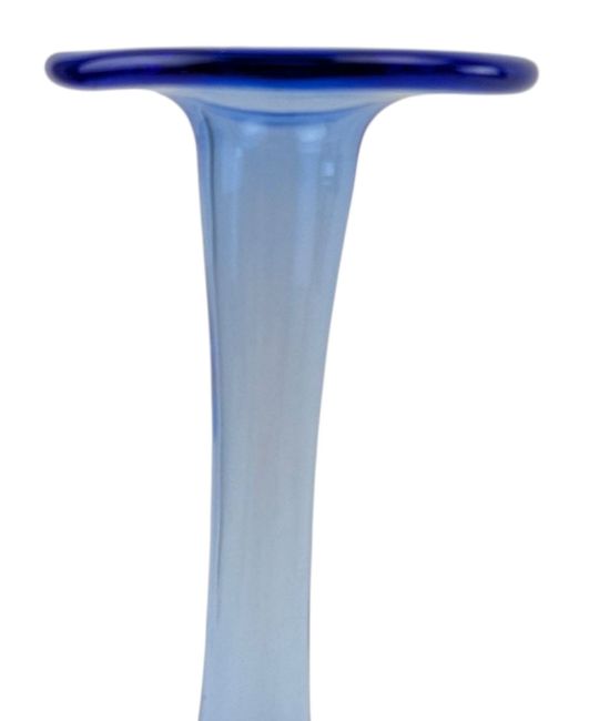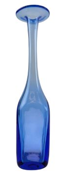 Kylle Svanlund for Holmegaard - a retro mid century Danish studio art glass Lagune blue glass bud vase. The vase having a lipped rim with a slender neck and a squared base. Signed to the base.