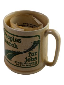 Mixed selection of ceramics, tea cups mugs etc. To include 1937 Edward VIII coronation saucers, plus 1937 George VI coronation teacup and saucer. Also to include 1953 Elizabeth II coronation twin-handled loving cup, Carlton Ware Harrods Toby Jug, and various mugs and cups of north of England and trade union interest.